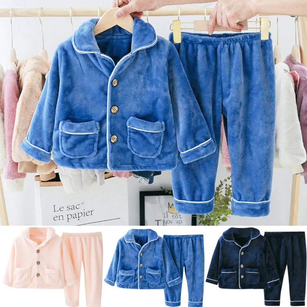 Children Flannel Pajamas Kids Toddler Boys Girls Pjs Thick Warm