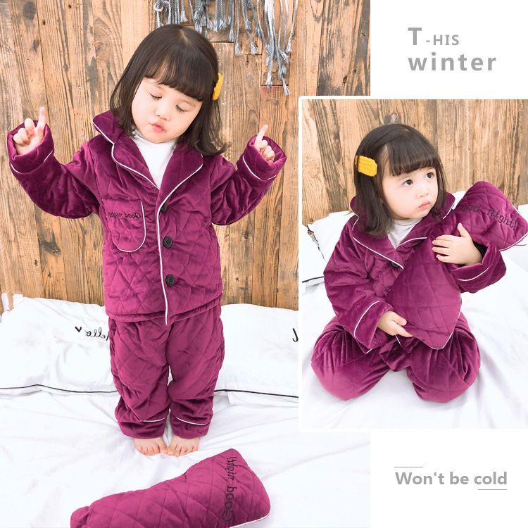 Children Pajamas Winter Thick Fleece Pajamas Baby Girls Boys Warm
