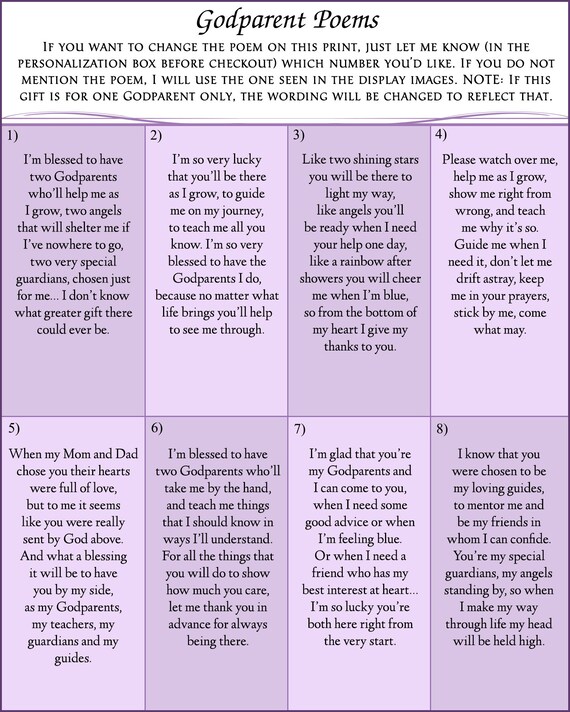 Godparent Prints Set Of 2 Gift From Godchild To Godmother Etsy