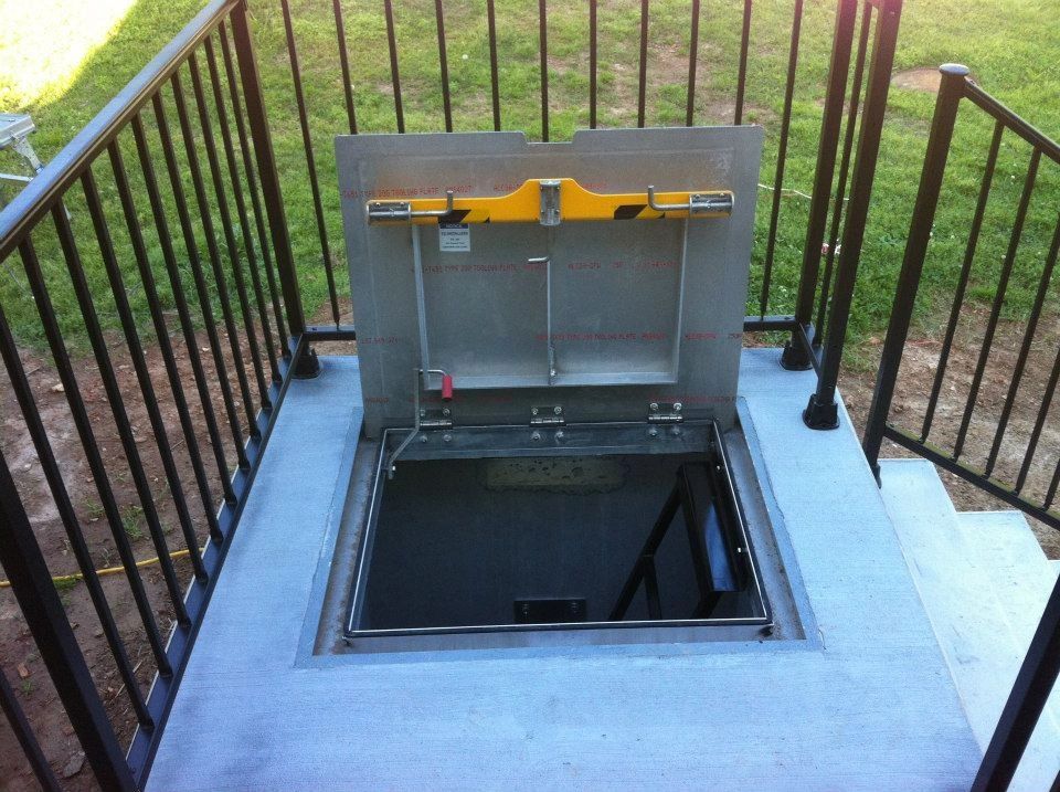 Safeporch storm shelters are designed for porches decks and manufactured homes strength and durability the design and construction of the safeporch ensures great strength and durability. This unit is embedded in concrete to prevent it from floating up due to ground water and to serve as anchorage for the unit during a storm since a portion of the unit is above ground.